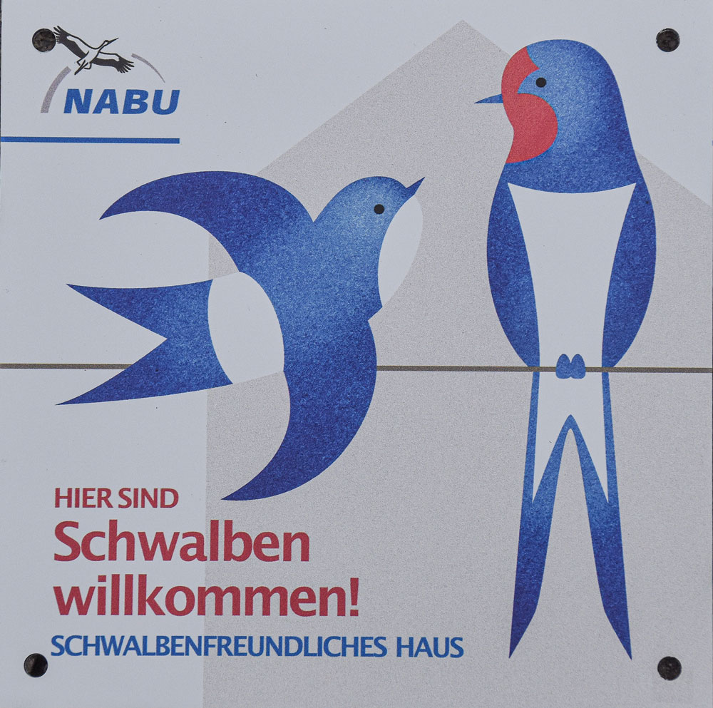 Hier kommt der Naturschutzbund Deutschland (Nabu) ins Spiel: Die Gerabronner Ortsgruppe zeichnet Familien und Unternehmen aus, die ein schwalbenfreundliches Haus besitzen. „Wir freuen uns, dass es noch Gebäude gibt, an denen Mehlschwalben nisten können“, betont Hartmut Himmelein, der Vorsitzende der Ortsgruppe. „Die Tiere machen Dreck und sind deshalb nicht immer erwünscht.“ Umso mehr lobte er, dass am Raiffeisenmarkt der LBV in Gerabronn nach wie vor sechs Nester zu finden sind. „Seit 2015 brüten an unserem Gebäude die Schwalben“, erzählt Marktleiterin Sabine Kremkus. „Und die Nester bleiben auch in Zukunft dort.“ Als Anerkennung und zum Dank verlieh Hartmut Himmelein dem LBV die Plakette „Schwalben willkommen – schwalbenfreundliches Haus“.