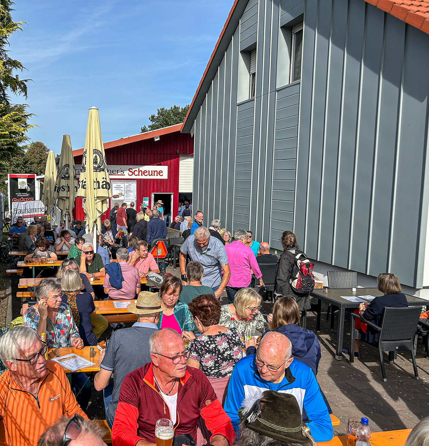 Bei schönem Wetter lädt der Biergarten vor der Scheune zum Verweilen ein.