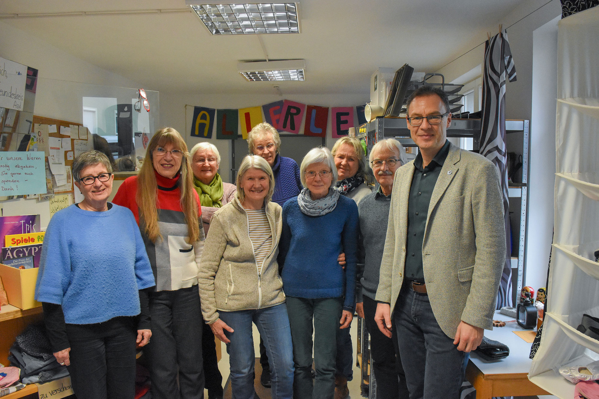 Der Secondhand-Laden „Allerei“ bietet nicht nur die Möglichkeit, sich mit gut erhaltenen, gebrauchten Dingen einzudecken, sondern auch die Gelegenheit zur ungezwungenen Begegnung: Während der Öffnungszeiten werden Tee und Kaffee angeboten. Einmal in der Woche öffnen sich die Türen auch für ein „Sprachcafé“. Neubürger können sich mit Einheimischen unterhalten und so ihre Sprachkenntnisse verbessern.